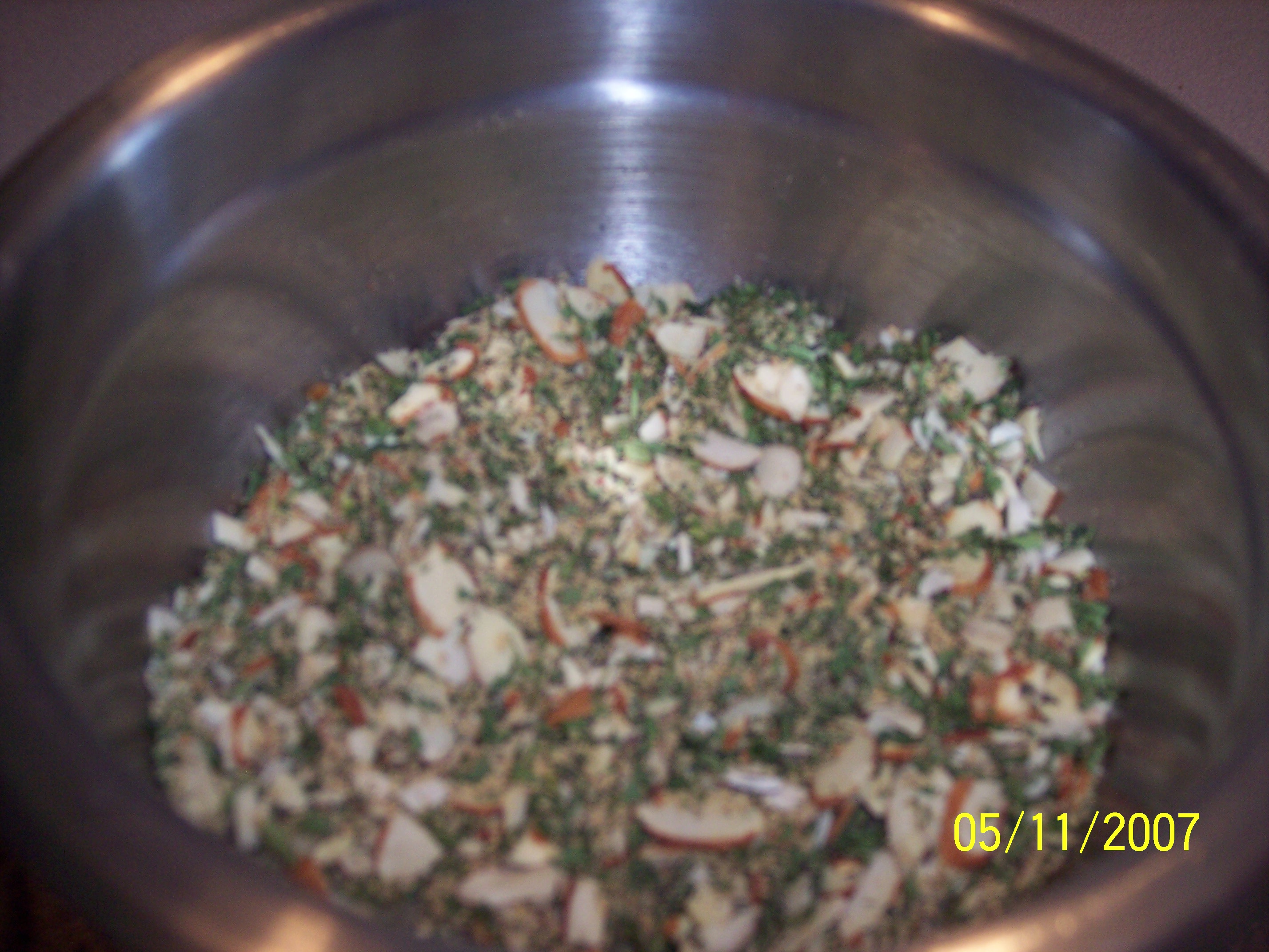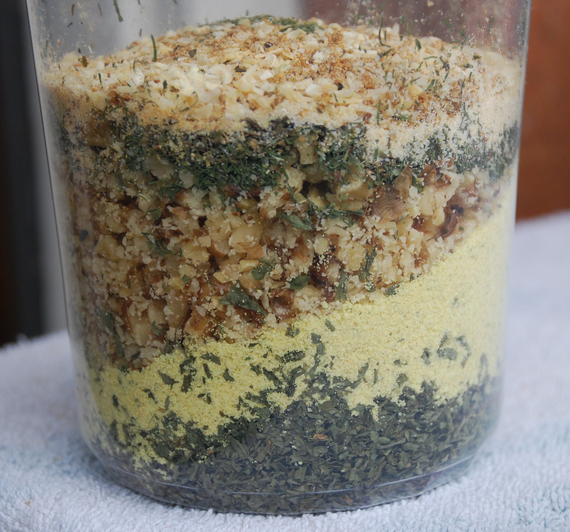 3?4 cup chicken bouillon granule 1?2 cup dried parsley 1 tablespoon basil 1 tablespoon dill weed 2 tablespoons dried onion flakes 1 teaspoon seasoning salt 2 teaspoons garlic powder 1 teaspoon lemon pepper seasoning 1 cup almonds, coarsley chopped,optional