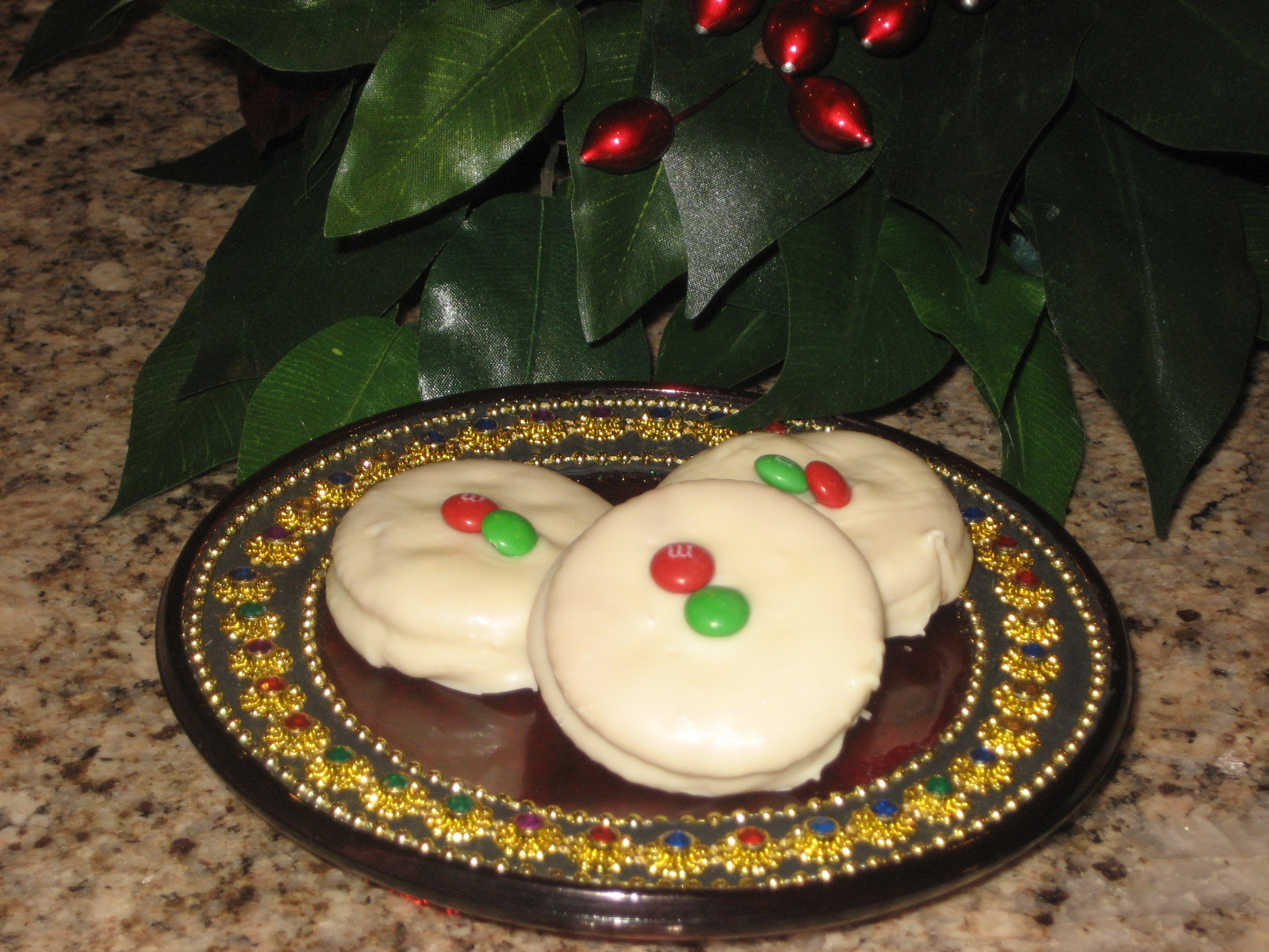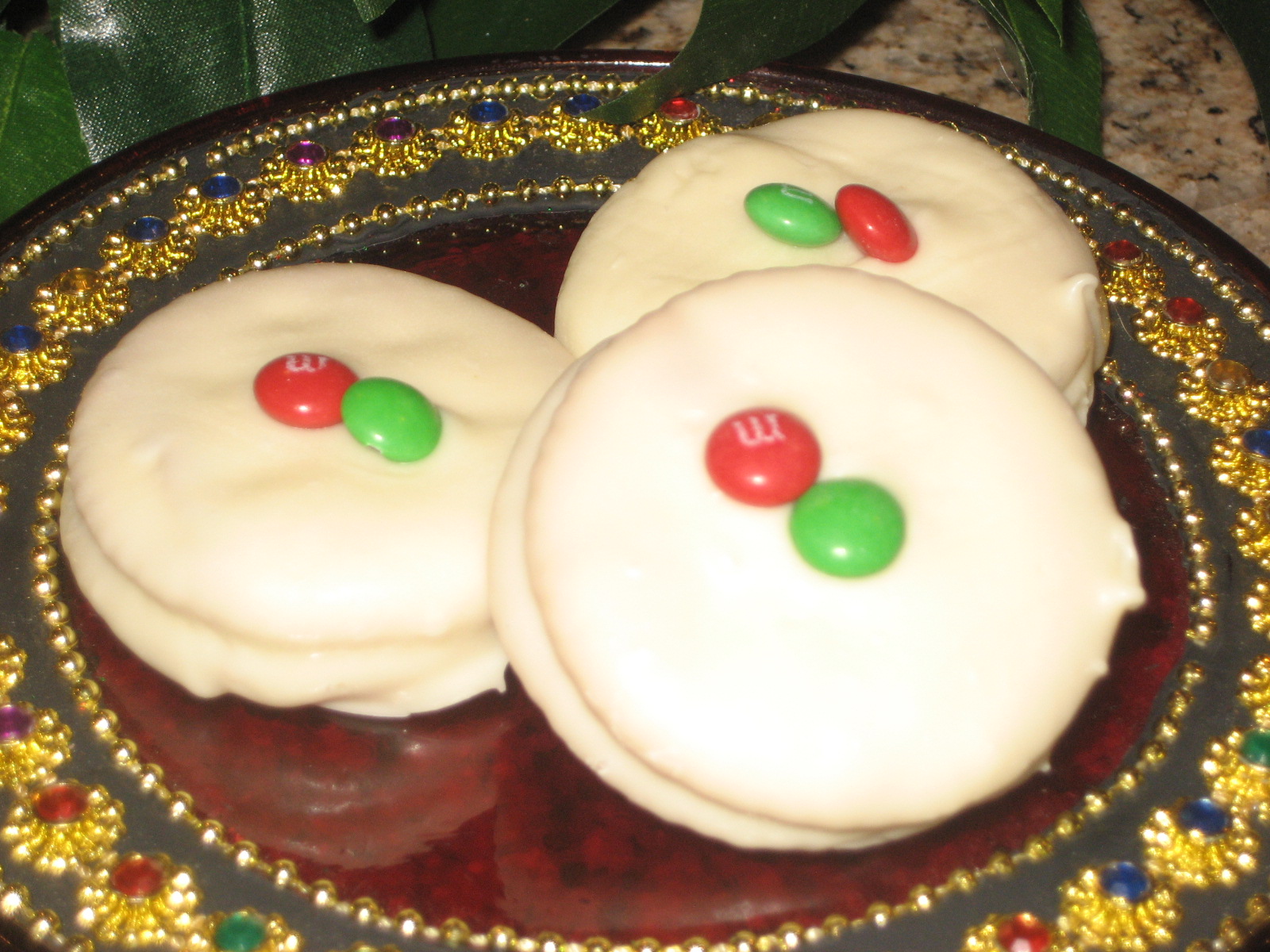 80 Ritz crackers (1 whole box that contains 4 sleeves) 3?4 cup creamy peanut butter 3 (14 ounce) bags white chocolate candy melts (white chocolate candy melt wafer discs) 1?3 cup miniature M&M's chocolate candies