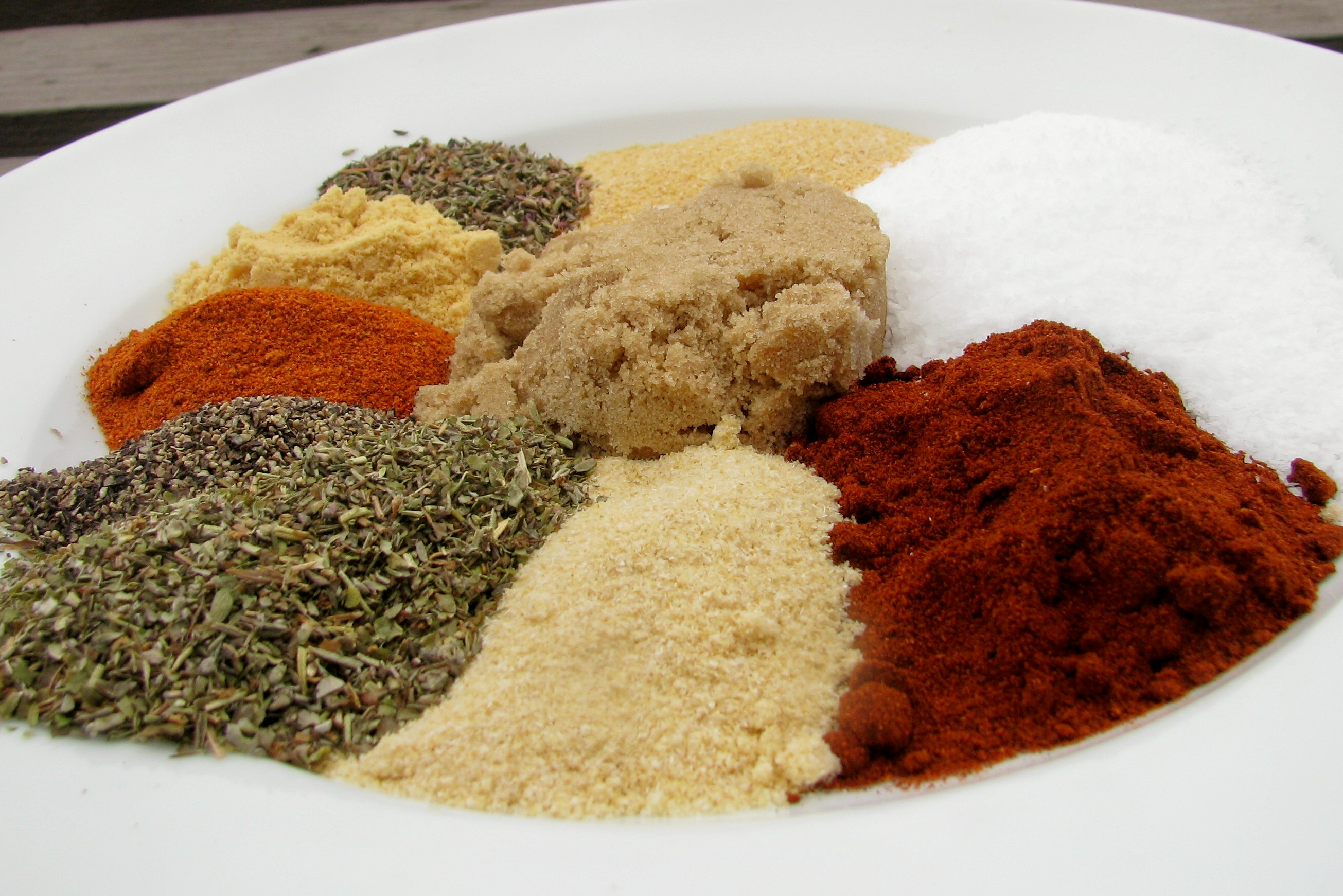 3?4 cup kosher salt (I use Sea Salt) 1?4 cup paprika (I use Smoked Paprika) 1?4 cup onion powder 1?4 cup garlic powder 1?4 cup italian seasoning 1?4 cup brown sugar 2 tablespoons dried thyme 2 tablespoons dry mustard 2 tablespoons cayenne pepper 2 tablespoons black pepper