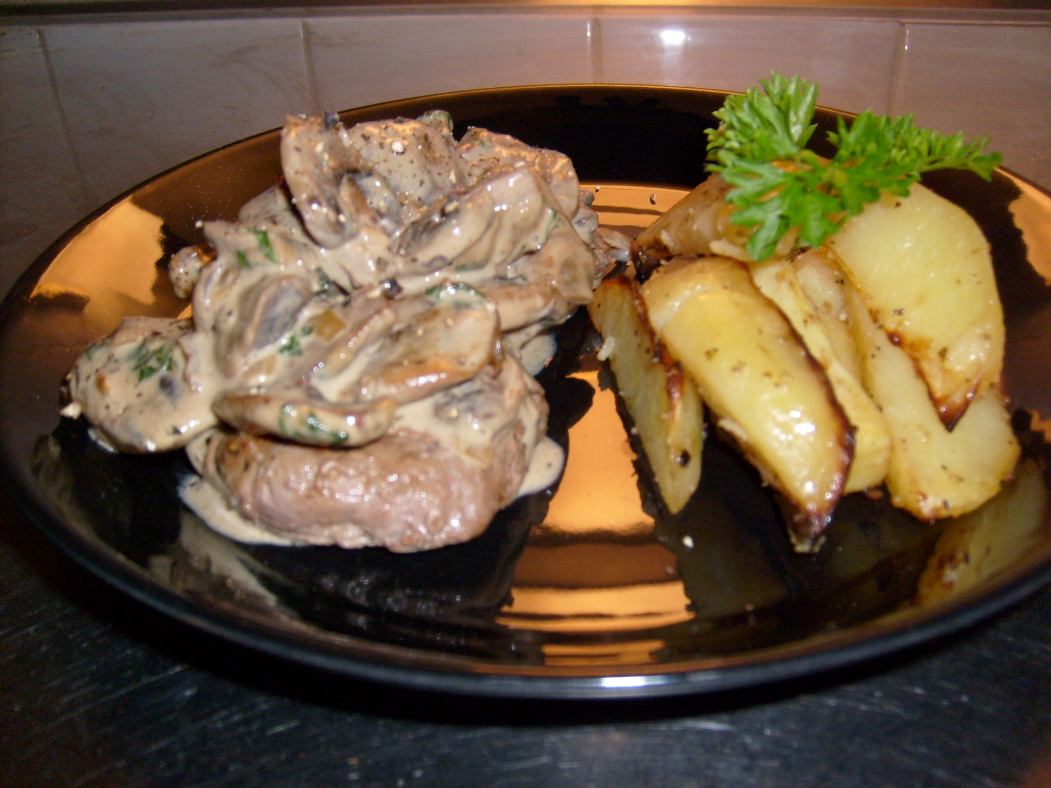 FOR THE MEAT 4 cube steaks 3 -4 tablespoons cracked black pepper (Please use McCormick's Cracked Black Pepper or equivalent, regular black pepper is NOT workable here) 1 tablespoon kosher salt 1 tablespoon olive oil 1 tablespoon soft butter FOR THE CREAM SAUCE 8 ounces cremini mushrooms, sliced (the Italian brown ones, or use small portabellas) 1 shallot, peeled and minced 2 garlic cloves, peeled and minced 1 tablespoon basil, chopped (fresh only or it won't taste the same) 1 cup heavy cream 2 tablespoons soft unsalted butter