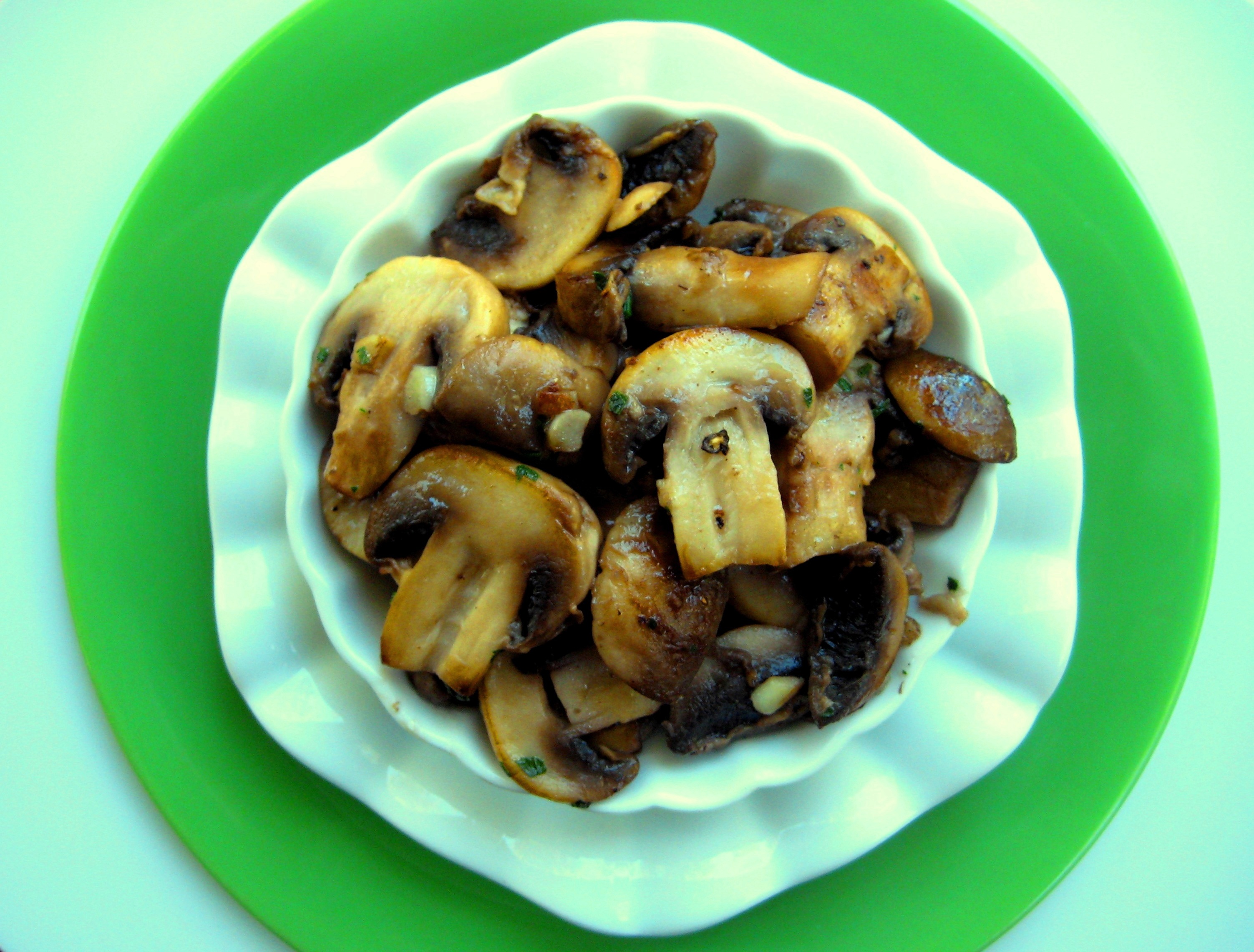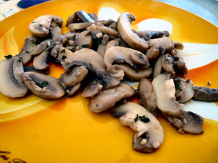 1 tablespoon olive oil 1?2 tablespoon butter 1 garlic clove 250 g mushrooms 1?2 tablespoon of fresh mint, chopped 1?2 tablespoon fresh parsley, chopped salt & pepper, to taste