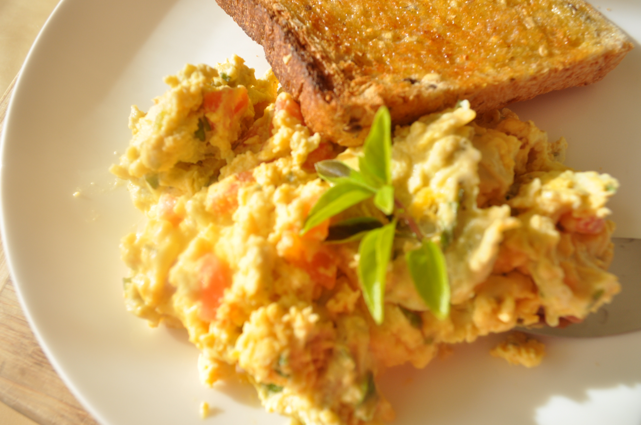 This easy SCRAMBLED EGGS WITH FINES HERBES AND TOMATOES Recipe. Step-by-Step. is perfect for busy families. Comes together quickly with a few staple ingredients!