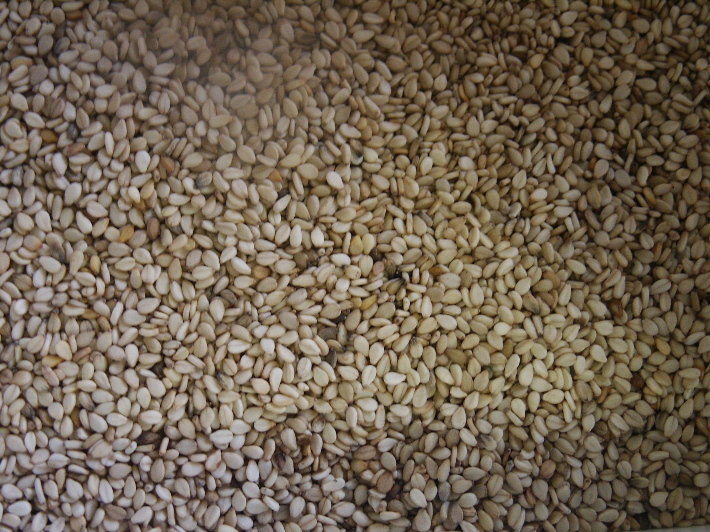 Cut each chicken breast into 4 long strips. Combine all marinade ingredients and marinate chicken strips in the refridgerator for 3 hours. Preheat oven to 175C. Wet wooden skewers and thread chicken strips onto skewers. Pour some of the marinade on the bottom of an ovenproof pan, place the skewers in the pan and sprinkle them with sesame seeds. Bake for 20 minutes or until done.