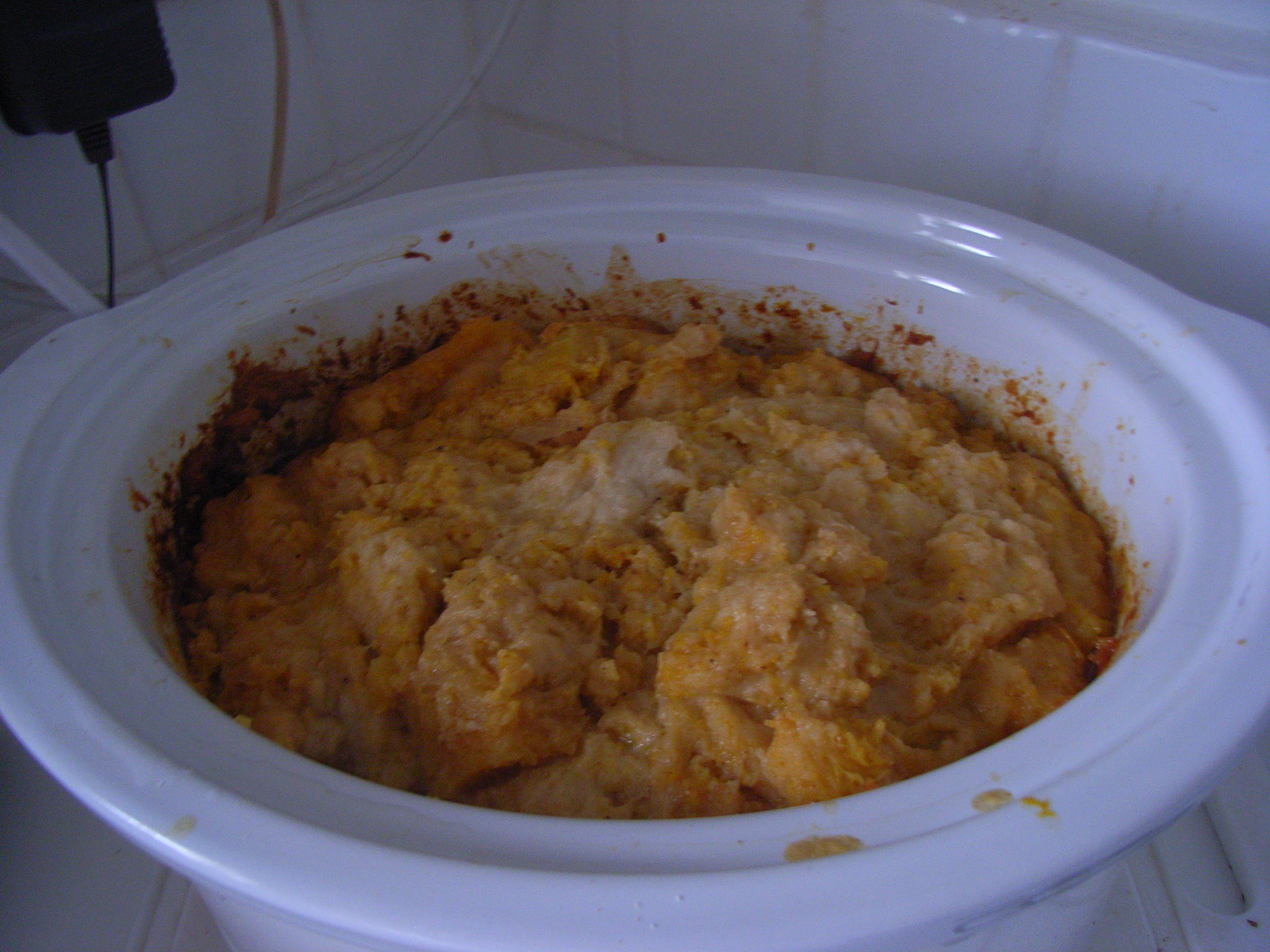 FOR THE PUDDING, place cubed bread in greased crockpot. Beat together milk & eggs. Stir in sugar, butter, raisins, pie filling, cinnamon & nutmeg. Pour pumpkin mixture over bread & stir. Cover & cook on high 1 hour, then reduce heat to low & cook 3-4 hours or until temperature reaches 160 degrees F. FOR THE SAUCE, just before pudding is done, melt butter in saucepan. Stir in flour until smooth, then gradually add water, sugar & vanilla. Bring to boil, then cook, stirring constantly for 2 minutes or until thickened. Pour sauce over hot bread pudding & serve.